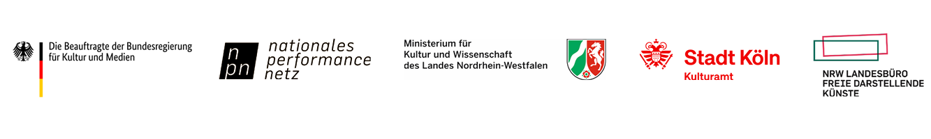 Subsidised by: Kulturamt Stadt Köln, Ministerium für Kultur und Wissenschaft des Landes Nordrhein-Westfalen, Landesbüro Freie Darstellende Künste Nordrhein-Westfalen.
