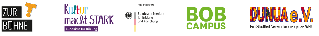 Dunua e.V. ist eine gemeinnützige Migrantenselbstorganisation, die sich für Weltoffenheit, Gerechtigkeit, Solidarität, kulturelle Bildung und das Umweltbewusstsein einsetzt. Dunua ist beim OPEN SPACE für k-UNS-t mit dabei und sorgt dafür, dass möglichst viele verschiedene junge Menschen mit dabei sind und sich im BOB CAMPUS zuhause fühlen.